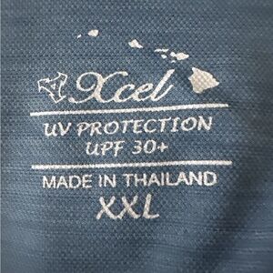 Xcel Women's VentX Long Sleeve Swim Shirt 2XL Surf Tee Blue UV Protection UPF 30 is a rash guard made of polyester and spandex. It features a solid blue color with a logo accent, and has long sleeves for UV protection. The swim shirt is lightweight and stretchy, making it comfortable to wear while swimming or surfing. It is a one-piece garment that should be hand washed only. The brand is Xcel, and the swim shirt is designed for women who enjoy beach sports. Rashguard