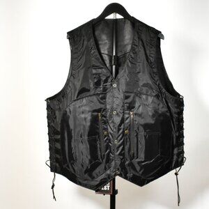 Xelement Black Leather Motorcycle Vest With Side Laces 10 Pocket Mens Size 3XL