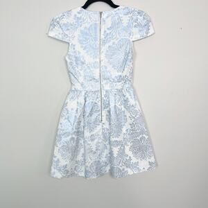 Xenia Shimmering Fit and Flare Dress Metallic Jacquard White Blue 2 Cocktail