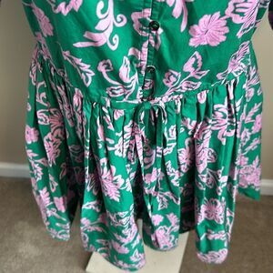 Crafted from lightweight cotton, this flirty mini dress features dramatic puff sleeves and a drawstring to define the waist.