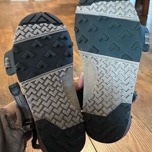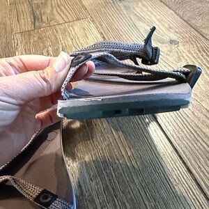 EUC lavender sandals, meant to be like going barefoot. Good for your feet (according to their website), and great for packing; they weigh almost nothing! Comfortable and adjustable straps.