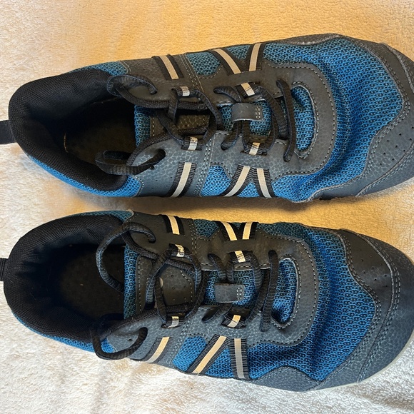 Used Men's Prio barefoot/minimal shoes, size 9. Synthetic leather on inner edge of toe box has worn away on both shoes (see photos), but shoes are otherwise in very good condition with minimal wear of tread. Lots of life left in these sneakers!