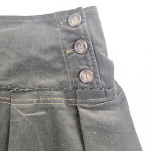 Step back into the early 2000s with this undeniable Xers Corduroy Mini Skirt. The deep olive green color and velvety fine-wale corduroy offer a gritty, textured look, perfectly embodying the Sleaze Revival and Grunge aesthetics. It’s cut incredibly short with an intentionally frayed, raw hem for that edgy, undone vibe, and features structured pleats for a touch of rebellious preppy flair. The trio of chunky, marbled tortoise shell-style buttons at the waist adds a functional and eye-catching detail, highlighted by the contrast orange topstitching found throughout the skirt.