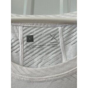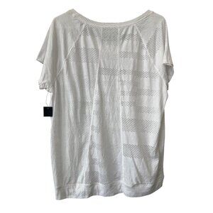 Xersion Athletic Top Size Large Short Sleeve Striped Semi Sheer White Sporty NEW