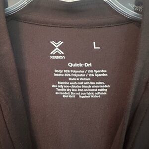Stylish short sleeve tee by Xersion. Features a sleek black front with white side panels. Perfect for active wear.