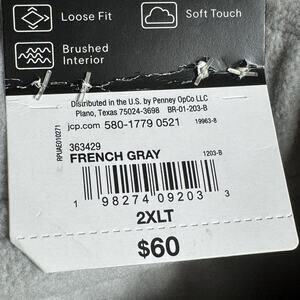 Soft fleece joggers in French gray by Xersion. Loose fit with drawstring waist, side and back pockets, and elastic cuffs. Smooth outside with a brushed interior for cozy comfort. New with tags, size 2XLT (tall fit). Brand new with tags (NWT). No defects or flaws.