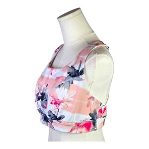 Xersion Floral Strappy Racerback Sports Bra Pink White Black Medium Support M