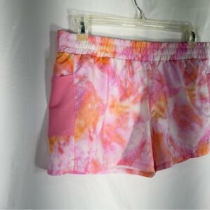 Xersion Girls Tie-Dye Pink Orange Quick Dry Running Shorts 18.5 Plus