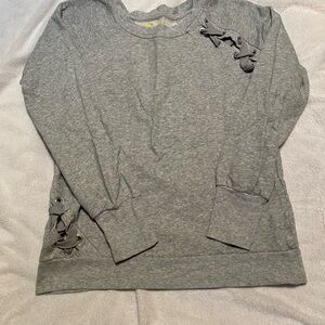 Chic light gray sweatshirt with stylish lace-up accents. Ideal for casual outings.