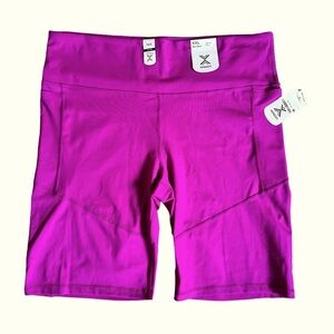 Xersion Neon Fuschia Knee Length Compression Shorts, Side Pockets, Women’s XXL