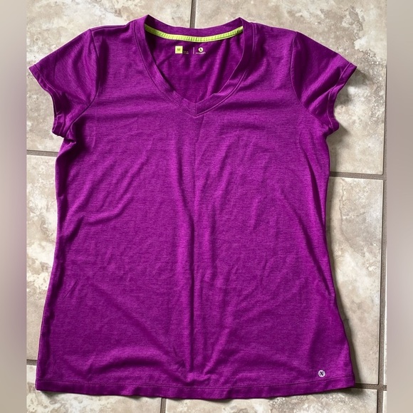 Xersion Purple V Neck Workout Top T-shirt Short Sleeves