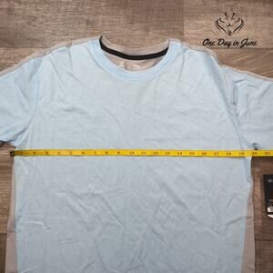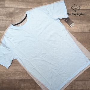 From dawn till dark, this comfy blue-grey tee will keep your cool intact, just wait and see! Made of cotton-poly that's soft and light, it's brand new with tags and fits just right!