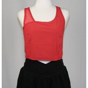 Xersion Sz Large sports bra mesh shoulder Workout Lined Red Cropped Spandex EUC