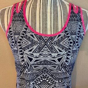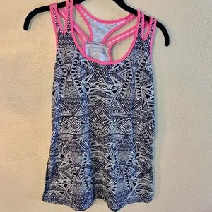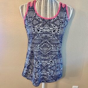 Xersion Tank Top Small Black White Tribal Design Hot Pink Trim Athletic Tank