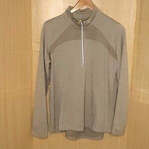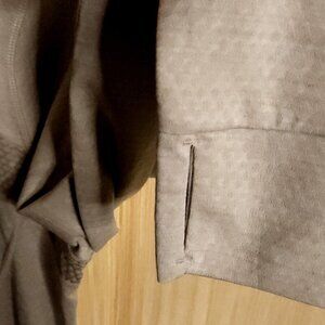 Xersion women’s grey quarter zip lightweight slim fit pullover XXL. Gently used condition. Measurements are: 32” sleeve sleeve (measured from neck seam), 29” from shoulder to shortest part of hem, and 23 ½" from armpit to armpit.