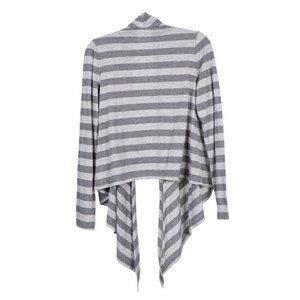 Xersion Yoga Cardigan M Womens Gray Striped Open Front Waterfall Cotton Blend