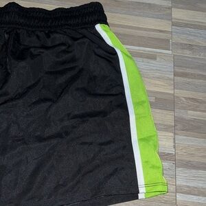 In excellent used condition- worn once. These active shorts are a super silky lightweight material. Drawstring waist, black with neon green and white side stripe. Size 2x.