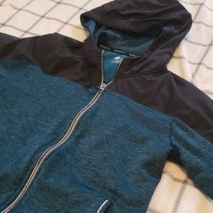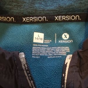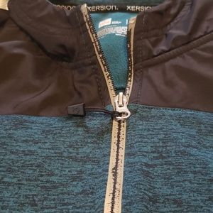 Xersion Teal jacket. Very nice color. Some wear on zipper area (see pics). Reflective zipper area.