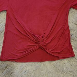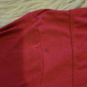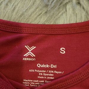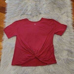 Xersion womens quick dri red tshirt with gathered back size small, small stain on upper left shoulder of shirt as shown in picture