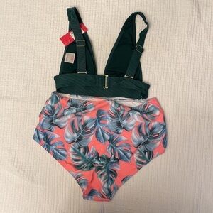 Xhilaration 2 Piece Swimwear Green Top S & Bright Tropical Print Bottom L
