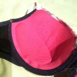 Pink, black and white gingham. Pink and white lace detail. Light push-up.