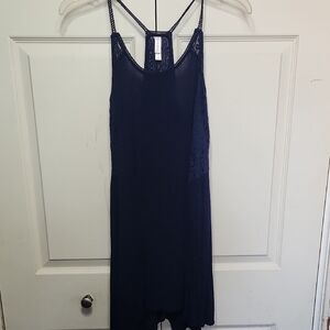 Xhilaration Assymetrical Navy Blue Halter Midi Laxe Slip Dress size M