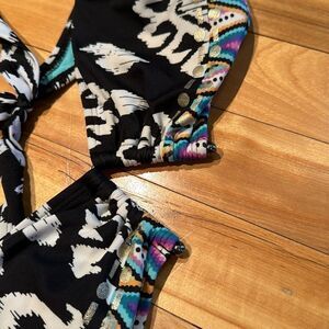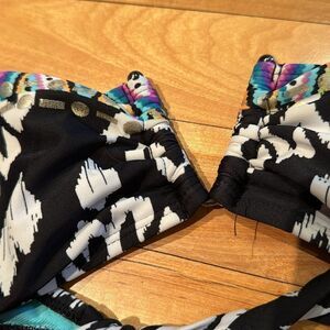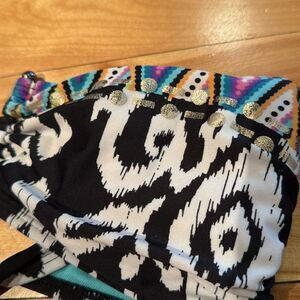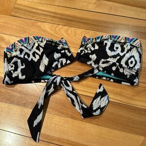 Xhilaration Aztec print split beaded metal center front tie back bikini top. Medium. Lightly padded with removable bra pads. Excellent condition. Nonsmoking home. E