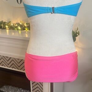 Chic strapless bikini set in vibrant pink, yellow and blue. Perfect for summer vibes.