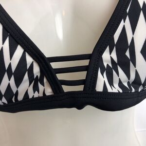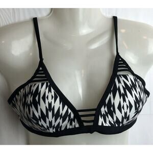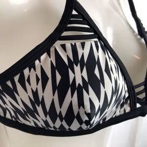 Xhilaration Bikini Top Junior M Black White Geo Print Padded Open String Detail