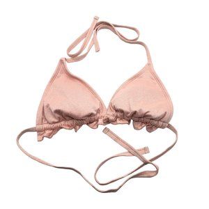 Xhilaration Bikini Top Ruffle Triangle Sparkle Glitter String Ties Pink D/DD