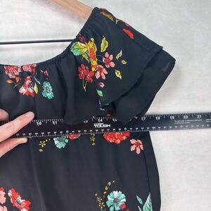 Tags: Xhilaration, Floral, Womens, Top, Black, Ruffle, Offshoulder, Sleeve, Small, Summer