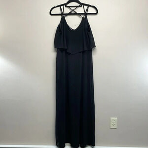 Xhilaration Black Maxi Dress Boho Embroidered Spaghetti Strap M