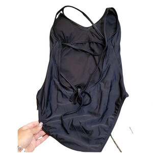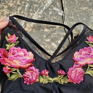 Xhilaration Black One Piece Swimsuit W/ Floral Embroidery