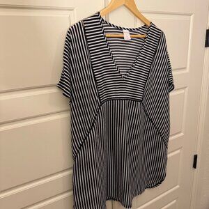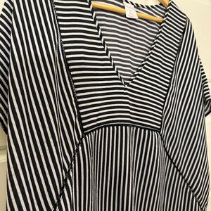 Xhilaration Black White Striped Tunic Top Stretch V-Neckline Short Sleeve Sz XL