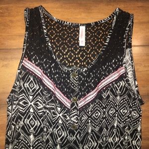 A beautiful lace design on the upper shoulder and chest area gives this romper a unique flare! Features a drawstring waste and a button up detail. Very cute for summer! Size small. Thanks for looking! Offers, bundles and any questions are welcome :)