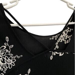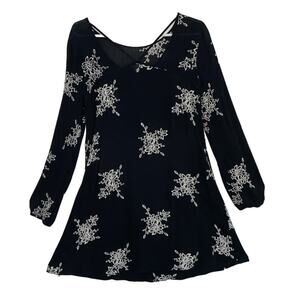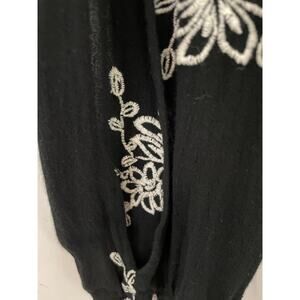 Xhilaration Black with Embroidered Flowers Split Sleeve Gauzy Mini Dress Large