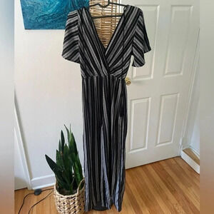 Xhilaration Black & White V-Neck Short Sleeve Elastic Waist Jumpsuit sz S