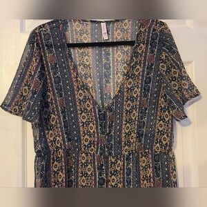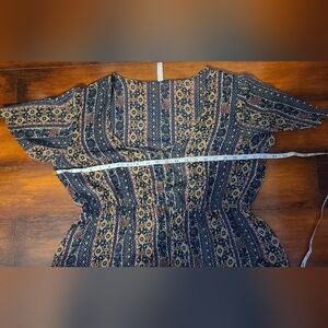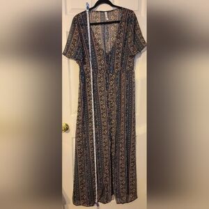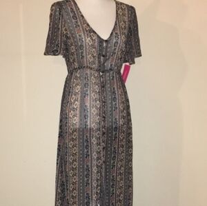 Xhilaration Blue Cream Sundress/Maxi dress with Flutter Sleeves