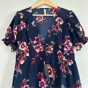 🦋 Xhilaration Blue Purple Floral Mini Dress Ruffle Formal Casual Medium