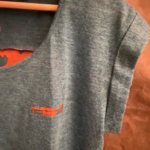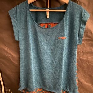 Xhilaration Blue S/S T-shirt with Organza Orange Blue Graphic Back Size Small