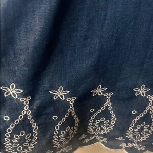 This sleeveless mini sundress by Xhilaration features a chic halter neckline, perfect for casual occasions. The dress showcases a beautiful blue color with a striking white embroidered pattern along the hem, adding a touch of elegance. Its lightweight fabric ensures comfort and style in warm weather.