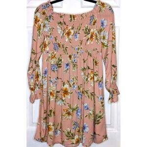 Xhilaration Blushing Pink Peasant Ruffle Long Sleeve Floral Spring Dress S