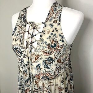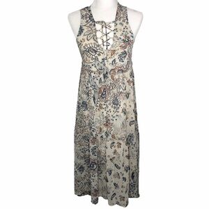 Xhilaration Boho Hi Lo Dress Floral Paisley Cream Blue Brown Juniors S Small