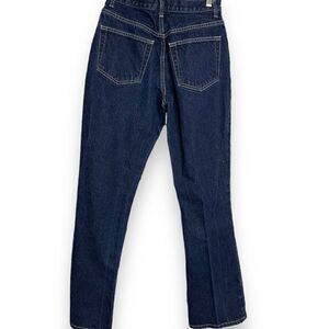 Dark wash button fly bootcut/flare leg jeans. Great overall condition. No rips or stains. Minimal signs of wear.