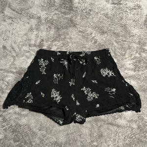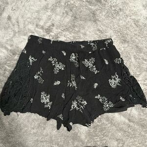 Bundle of 3 size medium black, black & white striped, and black & white lace floral dressy fabric shorts. Small flaw on striped shorts pictured.