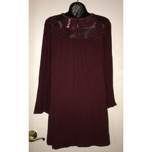 Xhilaration Burgundy Maroon Dress with Lace Tiered Bell Sleeve Sz XS X-Small