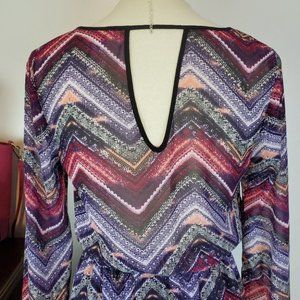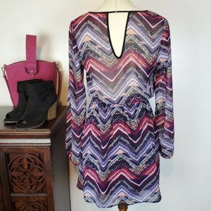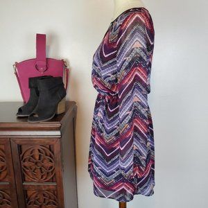 Xhilaration Chevron Pullover Dress With Sheer Sleeves Elastic Waist Size SP