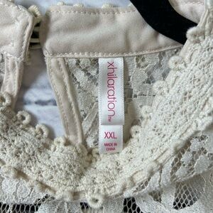 Xhilaration Cream Embellished Lace Sleeveless Blouse with Mandarin Collar. XXL