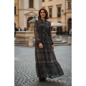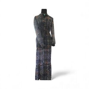 Xhilaration Dark Boho Sheer Maxi Dress Size SM Tiered Floral Whimsigoth Romantic