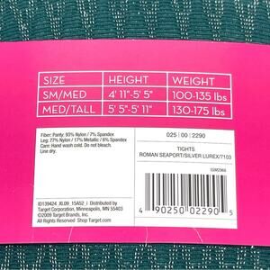 Xhilaration Dark Green (Roman Seaport) & Metallic Silver Lurex Low Rise Textured Tights - S/M
